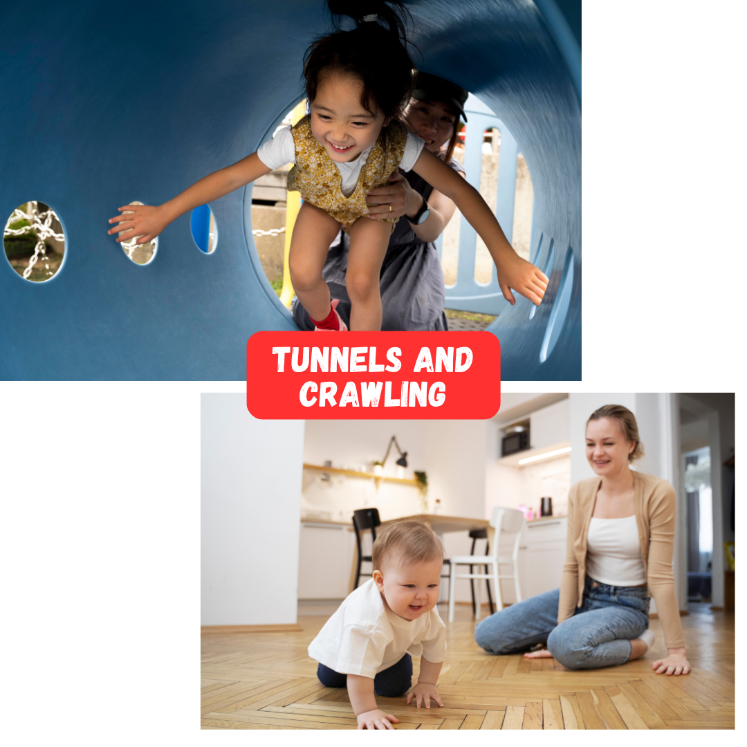 How to play: Children crawl through play tunnels or under small structures as part of a play activity.